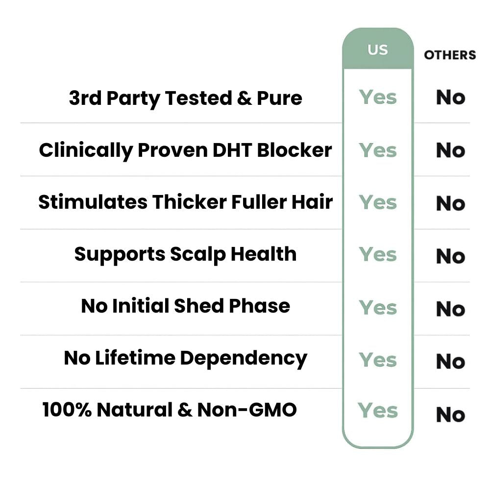 Yes. Our formula pairs well with other hair growth solutions, especially topical treatments. Its internal DHT-blocking action supports the effects of scalp serums and oils, offering a comprehensive approach to hair health. Many users see enhanced results when combining it with external treatments.