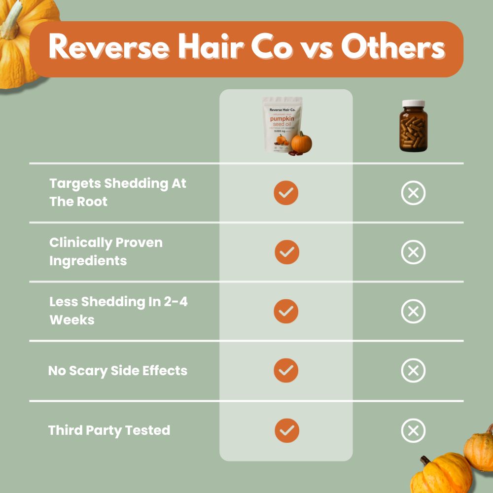 We’re so sure you’ll love Reverse Pumpkin Seed Oil because we’ve witnessed the amazing results it can create. If your hair doesn’t feel thicker, fuller, and with reduced shedding within 90 days, you’re entitled to a complete refund.