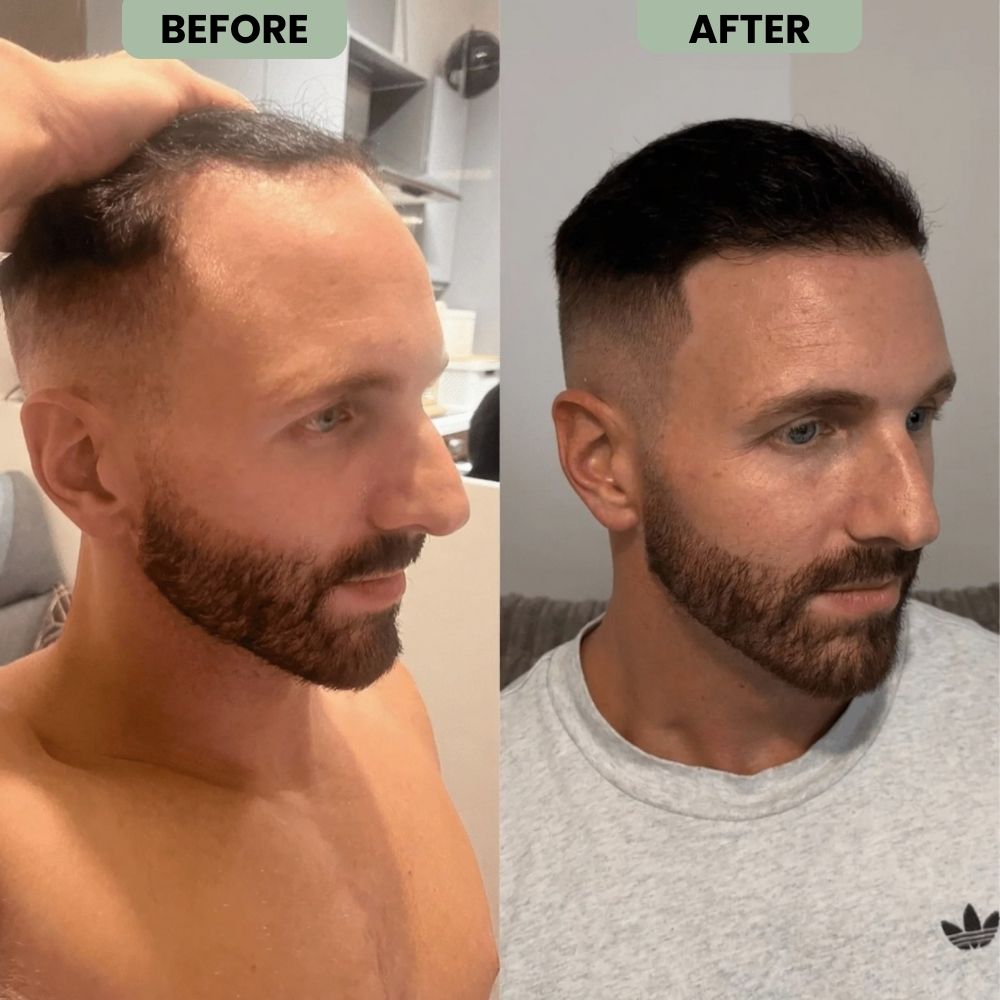 Most guys start seeing baby hairs in 2–4 weeks. It depends on your scalp health and consistency — but when used daily, you’re fueling real change where it matters most.